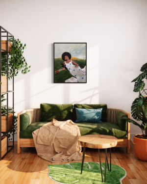 “Area of Tranquility” captures the essence of inner peace and harmony, skillfully expressed through the lady’s serene expression and graceful posture. Josué Pierre’s unique vision and artistic talent shine through, making this artwork a captivating addition to any art lover’s collection.