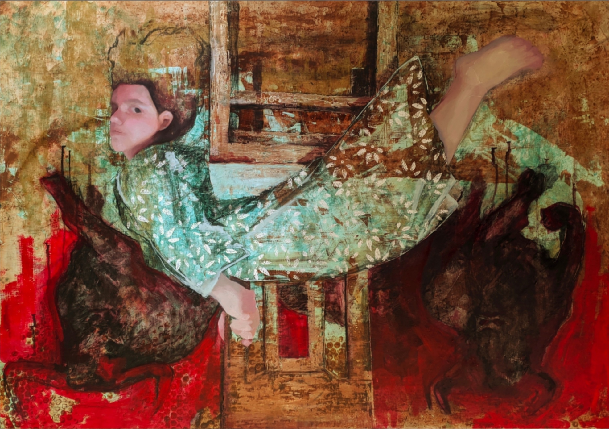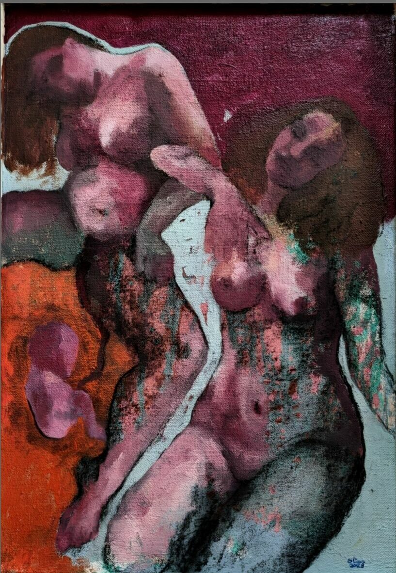 Hanan Ramadan, a young Egyptian artist, escapes through painting and draws her inspiration from the posture of young women's bodies. Internal conflict, mysticism and women's ability to heal are Hanan's favorite subjects. She draws from them victorious and sometimes tormented postures that she layers on canvas. Emphatic and touching by nature, Hanan's main mission seems to be to reassure women of their beauty and resilience.